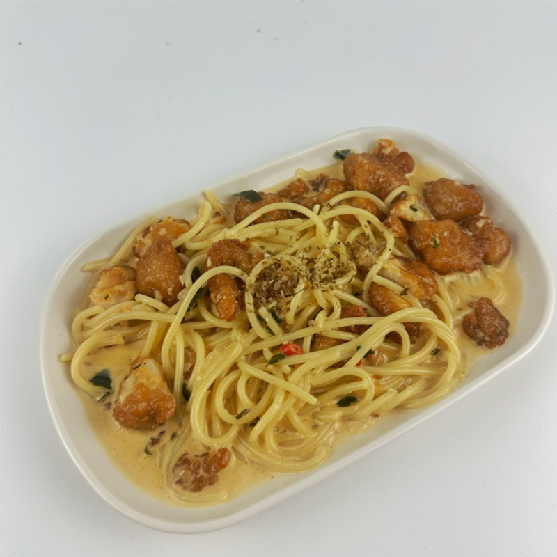 Combination of spaghetti and our signature buttermilk sasuce served with chicken popcorn